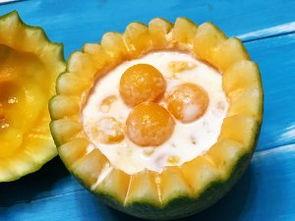 4. 蜜瓜球冰淇淋:将蜜瓜球与冰淇淋混合,口感丰富,夏日必备。